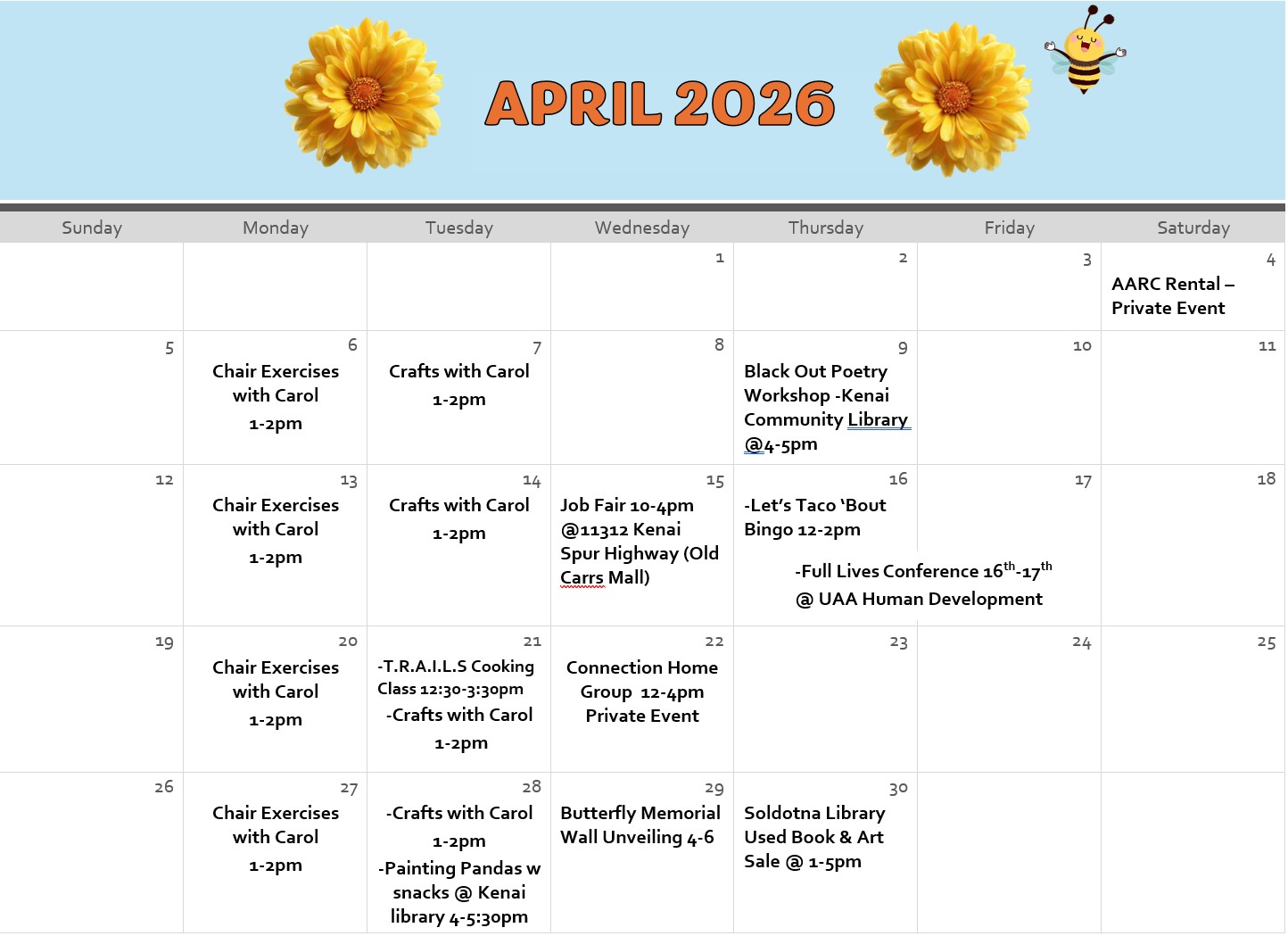 For more information about the Center or our programs, follow us on Facebook, call our Kenai office or send an email.