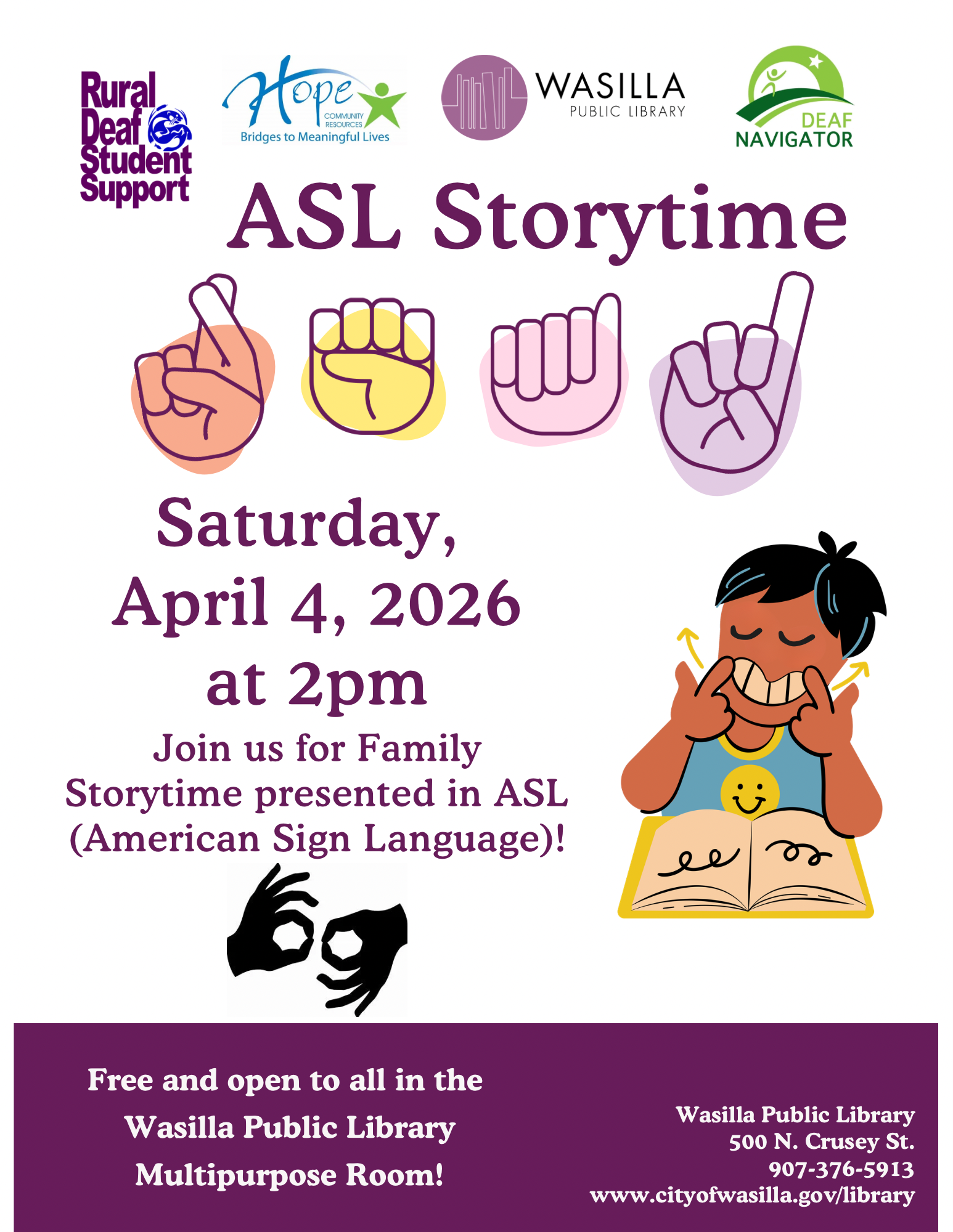 We invite you to watch and share this collection of children's books in ASL. Perfect for young readers and their families, these videos offer an immersive and accessible way to enjoy Alaskan tales.