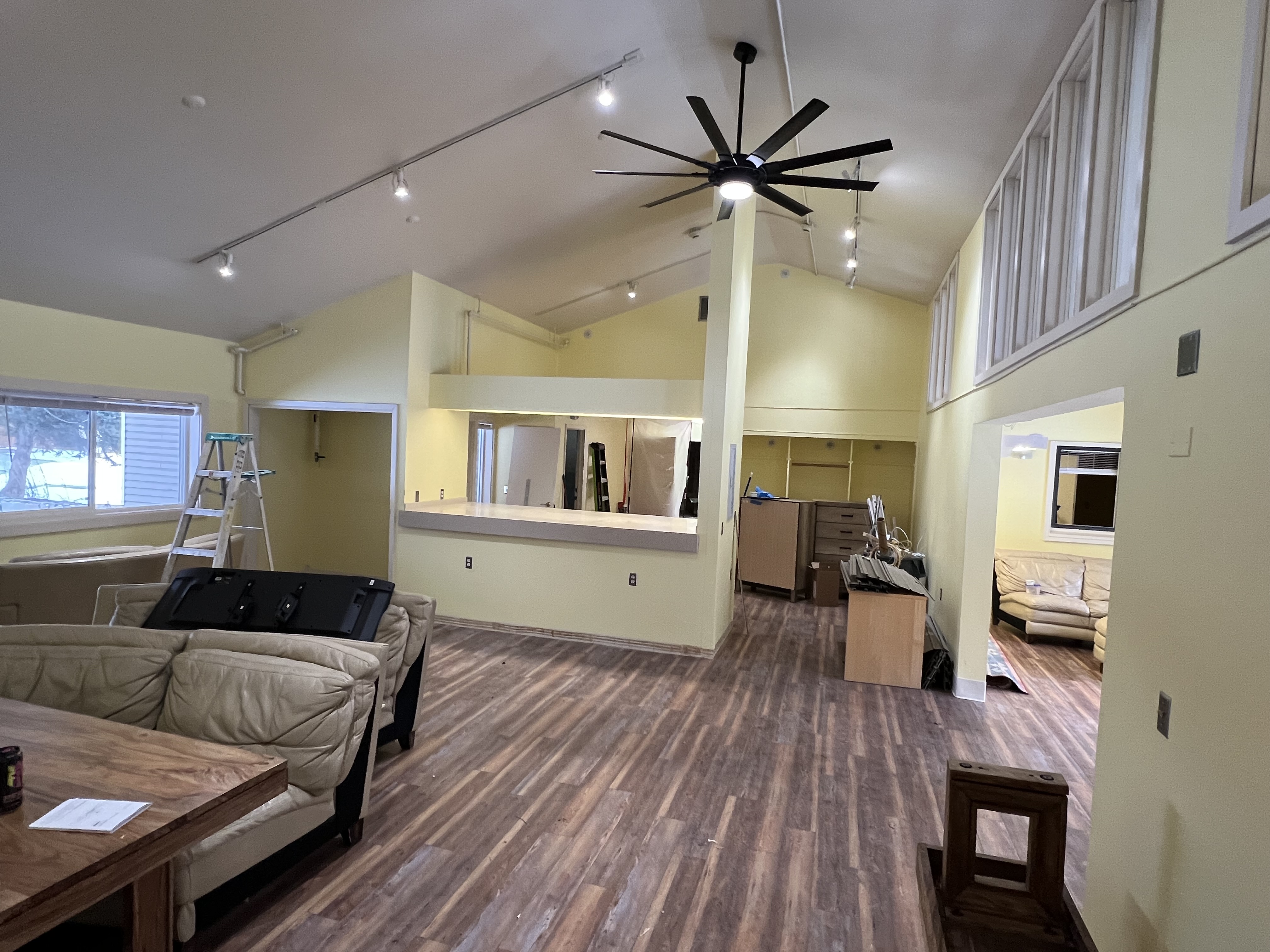 One such project was a full renovation of our Farm Loop residence in Wasilla — including accessibility-focused layout changes, new windows, doors, flooring, and lighting, along with full kitchen and bathroom remodels. The home now also features a private living space for the Resident Manager, including a kitchen, office, bedroom, and bathroom.