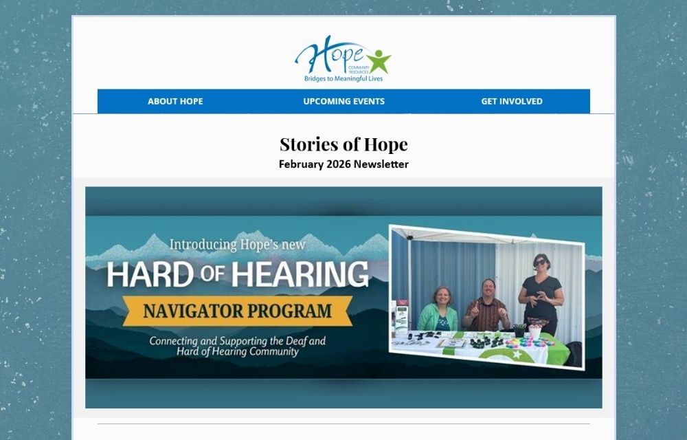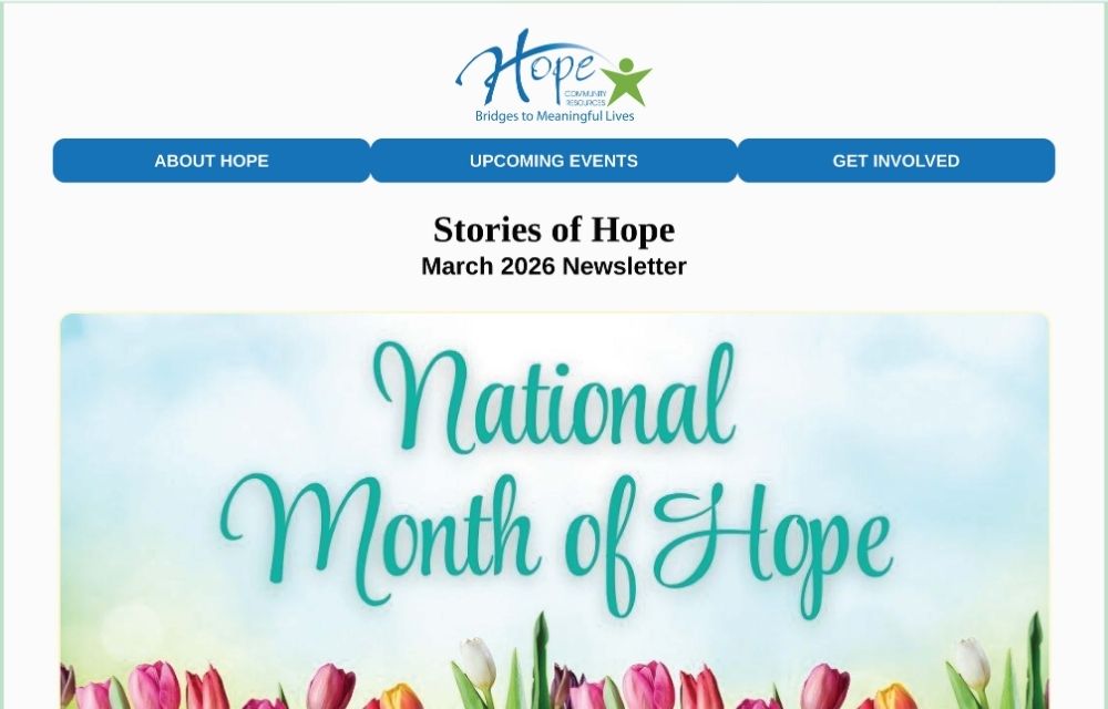 Hope is pleased to offer our monthly 'Stories of Hope' newsletters. In each edition we share with you current events, highlights from the month, relevant news, stories, and more valuable content to keep you informed on what's going on at Hope and in the disability community.