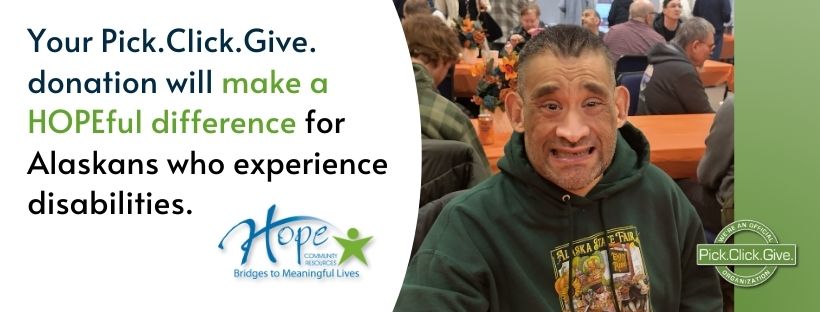 The deadline to apply for your PFD is coming up soon on March 31, please take a moment to include a Pick.Click.Give. gift to Hope. If you’ve already filed for your PFD, it’s not too late—you can still add or update your Pick.Click.Give. donation anytime before August 31 by visiting pfd.alaska.gov and selecting the green ‘Add or change your Pick.Click.Give. donation’ button. Pledges start at just $25, and even small changes to a person's home can make a big difference in their daily life.
